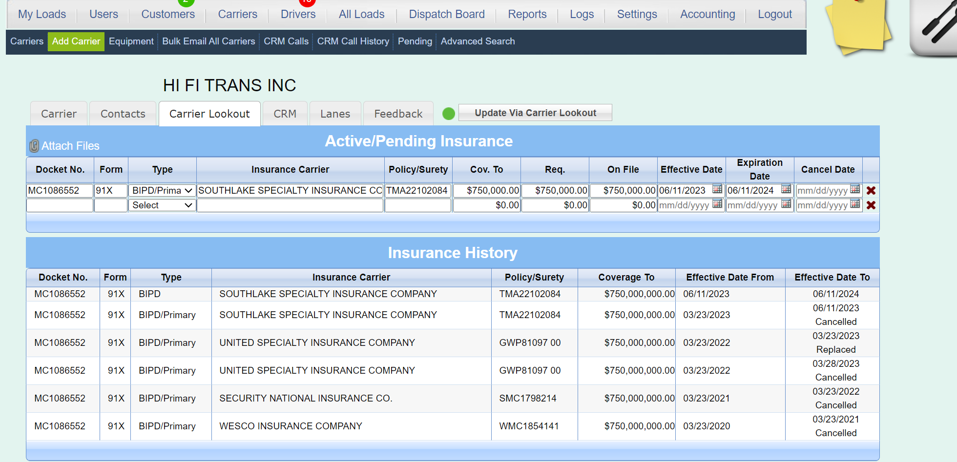 Carrier Lookout provides tracking for B.A.S.I.C. scores, Insurance, and Safety data as reported by the FMCSA. Load Manager has partnered with Carrier Software to provide this fully integrates tracking application to streamline due dilligent to help meet your compliance obligations, providing you insight into carriers right on your TMS.