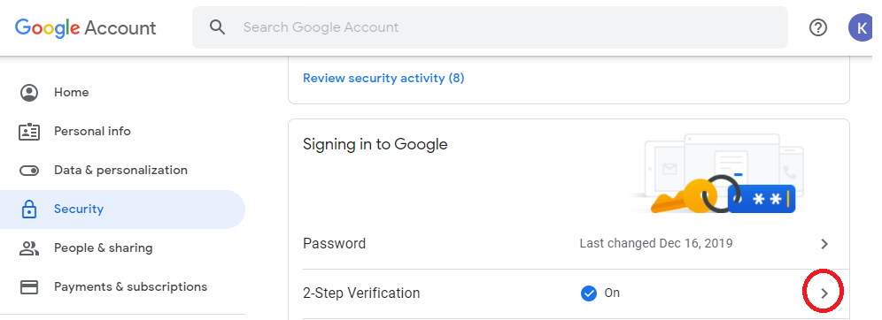2) a) Scroll down to the "Signing in with Google" section. (It may say ways you sign in to Google or something similar)