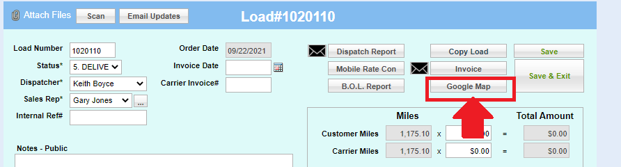 2. Inside the Load Information Screen, click on the "Google" Map button
